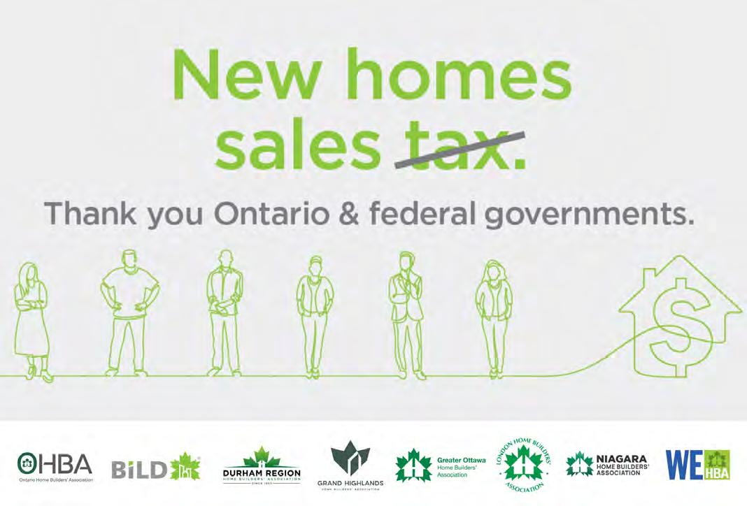 This announcement is the result of years of advocacy work led by OHBA and our local HBAs, and of OHBA and BILD presenting concrete evidence to both levels of government over the past year to show that the time to act and make this muchneeded change was now. This latest policy change is designed to reduce upfront homeownership costs, help restore momentum in Ontario’s housing market, and directly support the continued construction of new homes to meet the needs of Ontario’s growing population. OHBA and our members have used our One Voice through meetings with local MPPs and MPs, ensuring that key decision-makers understand the