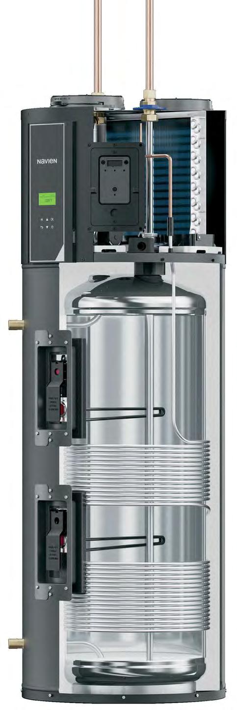 The Navien NWP500 is built for efficiency, performance and durability with a stainlesssteel tank and aluminum refrigeration coils... no anodes needed. To learn more about all the advantages of the NEW NWP500, visit navieninc.com or scan the QR code.