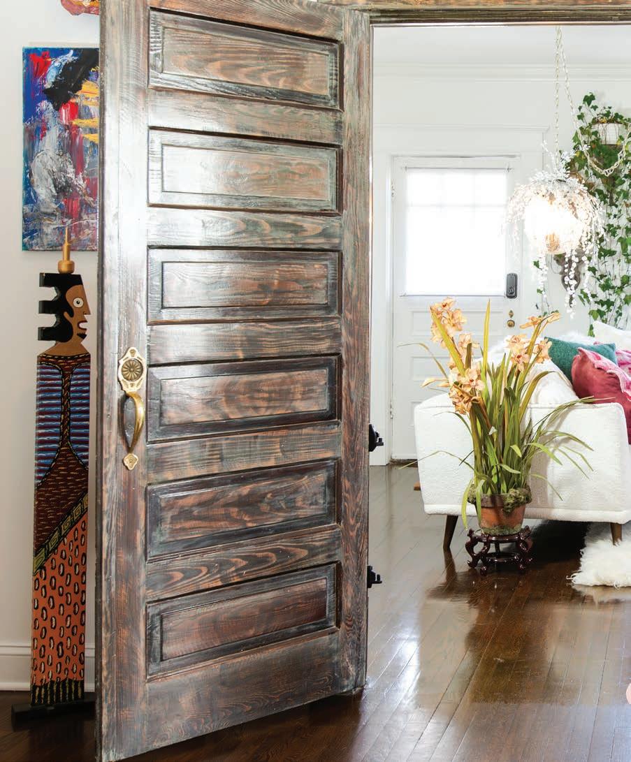 Beyond the front door, the family room featured the inevitable ’60s faux-bois paneled walls and linoleum flooring that vaguely resembled bricks. The tacky residue left behind by a rug adhesive attracted the fur of our golden retriever, Butterscotch. In fact, every surface seemed sticky and dirty.