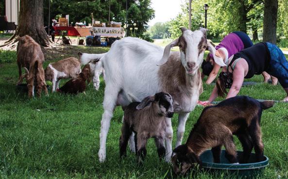 Mind, body, and goats: Animals enhance yogis’ connection to the land during classes at member’s farm.
