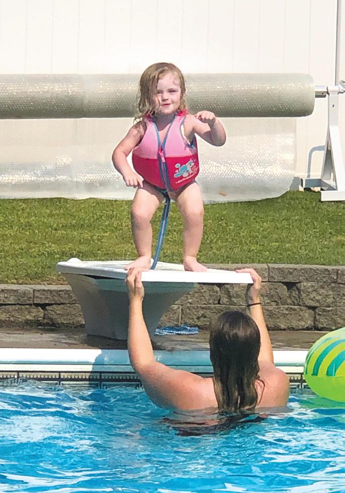 6. Moeller sisters Madison (left) and Abbie going off the diving boards together last summer.