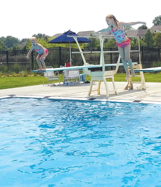 6. Moeller sisters Madison (left) and Abbie going off the diving boards together last summer.