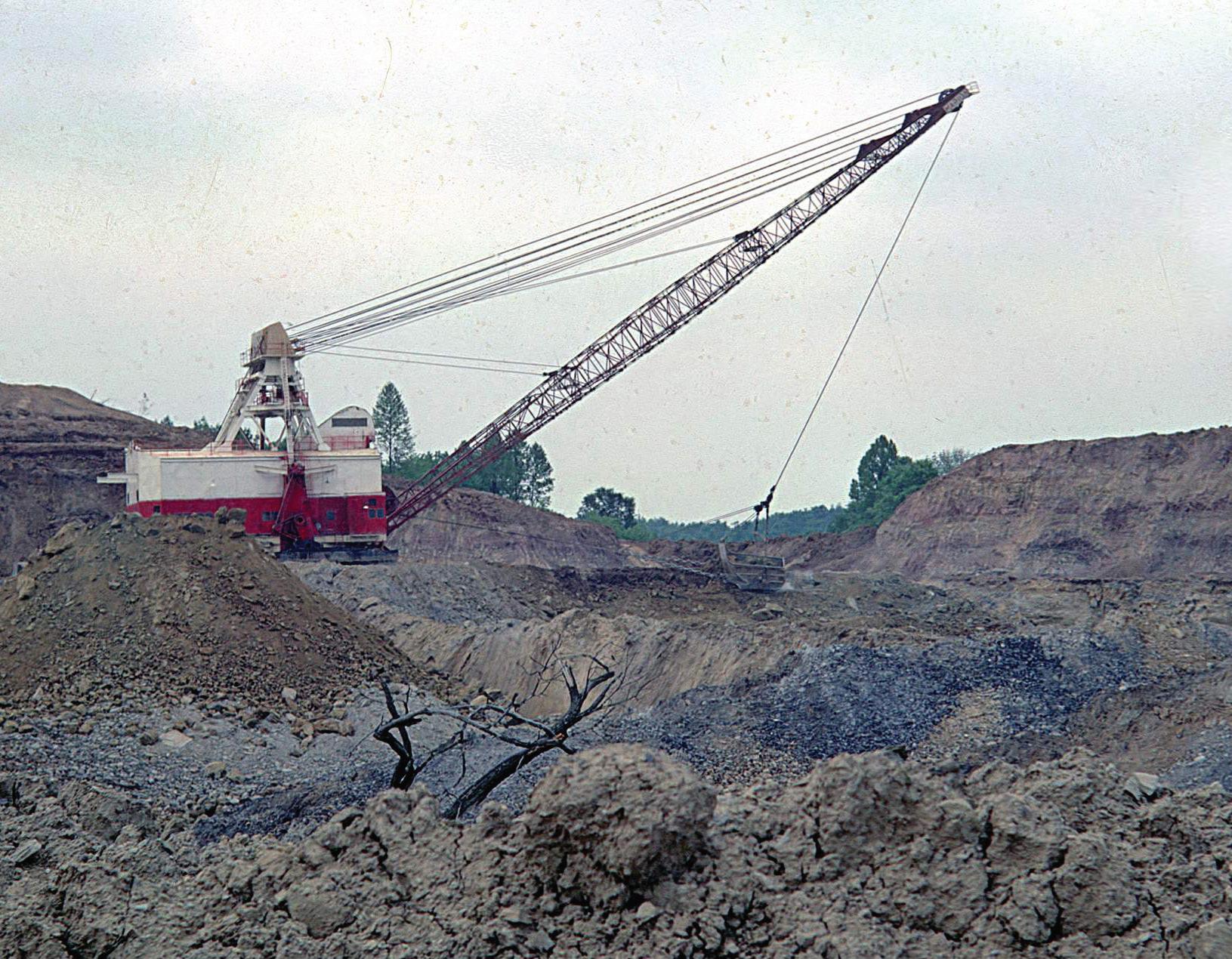 Today, the horizontal mine passageways extend several miles under the lake. The large, powerful equipment