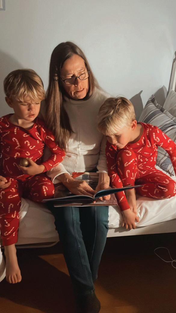 3 Shafer and Theo Fronckowiak listen to their bedtime story read by Grammie Bobby Bender.