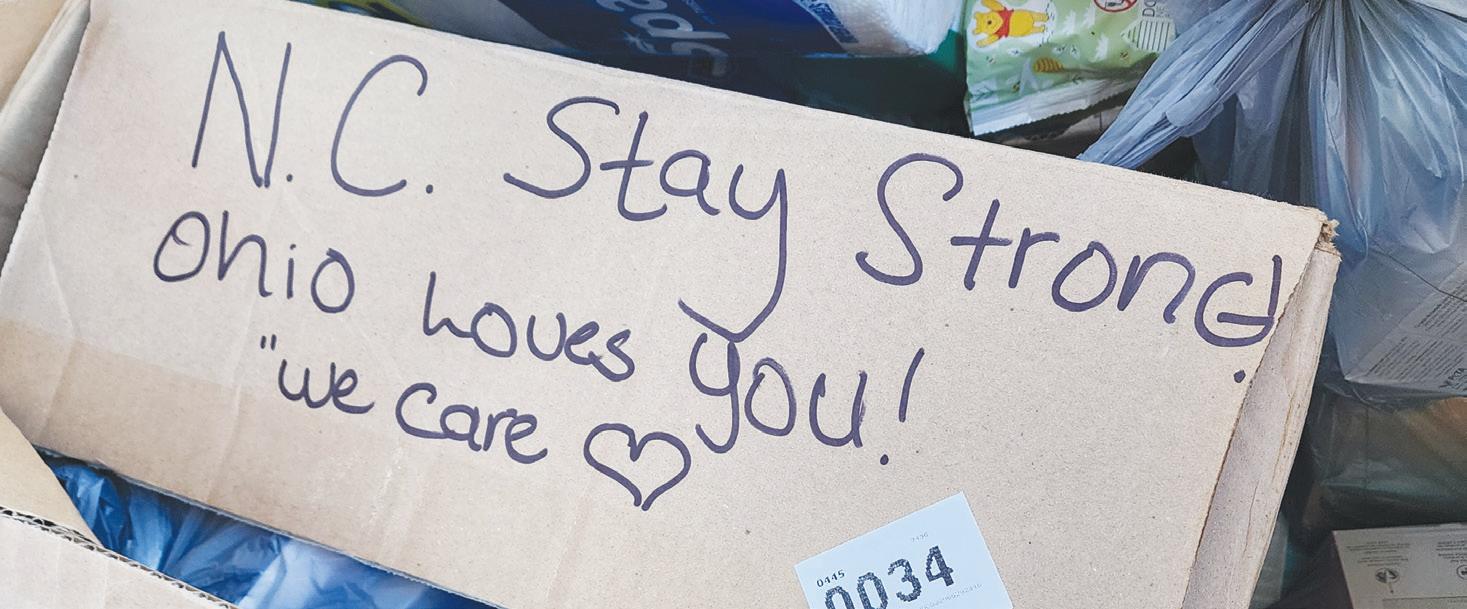 Lineworkers from more than 20 states began arriving the day after Helene blew through, working 16 hours a day, seven days a week to repair the damage done to cooperative systems. Ohio cooperatives alone sent more than 100 lineworkers to help their sister co-ops in some of the hardest-hit areas of North and South Carolina. Ohio cooperatives also organized donations of needed supplies and money to assist some of the most stormravaged communities.