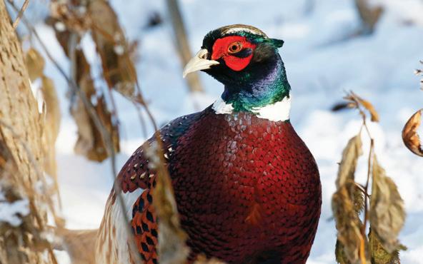 The Asian ring-necked pheasant is a non-native game bird to Ohio; the first stocking here occurred in 1896