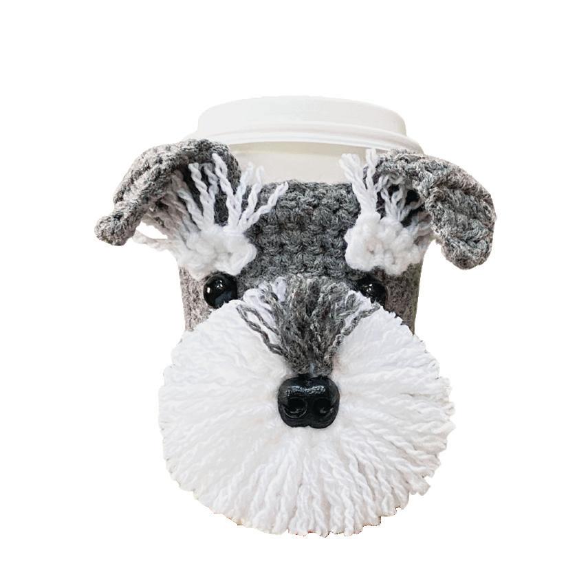 A crochet hook, high-quality yarns, and plenty of imagination are the only things Angela Doherty needs as she designs and crafts adorable canine cup and mug cozies. Although her personal favorite is the Schnauzer, Angel’s cozies cover breeds from Australian cattle dogs to Yorkshire terriers with lots of “doodles” — including the Labradoodle, goldendoodle, and Bernedoodle — in between.