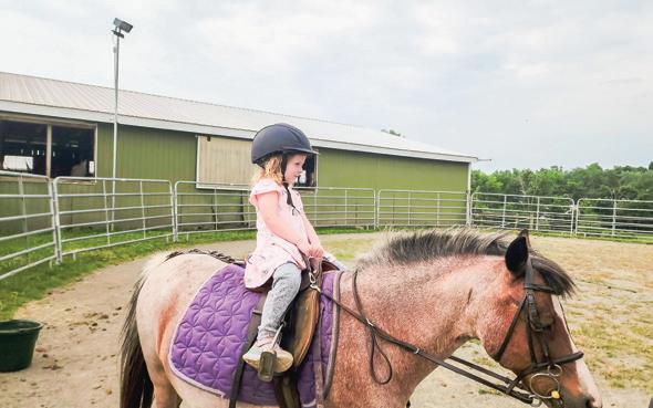 Our great-granddaughter, Evelyn Grace Dougherty, age 3½, loves her riding lesson. Lawson and Peggy Widman, Hancock-Wood Electric Cooperative members