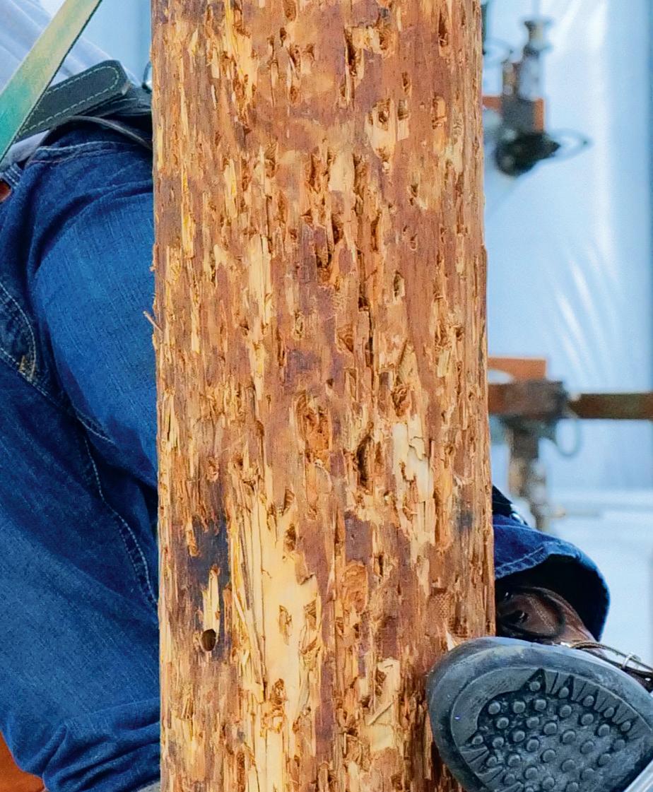 The knowledge and skill are earned over a four-year apprenticeship, including 8,000 hours of on-the-job training interspersed with 600 hours of instruction at COLT. The pride of COLT is the indoor training facility, completed in 2017. Its ceiling is high enough to accommodate 40-foot utility poles, which students learn to climb wearing pole climber boots with gaffs — metal spikes that penetrate the wood.