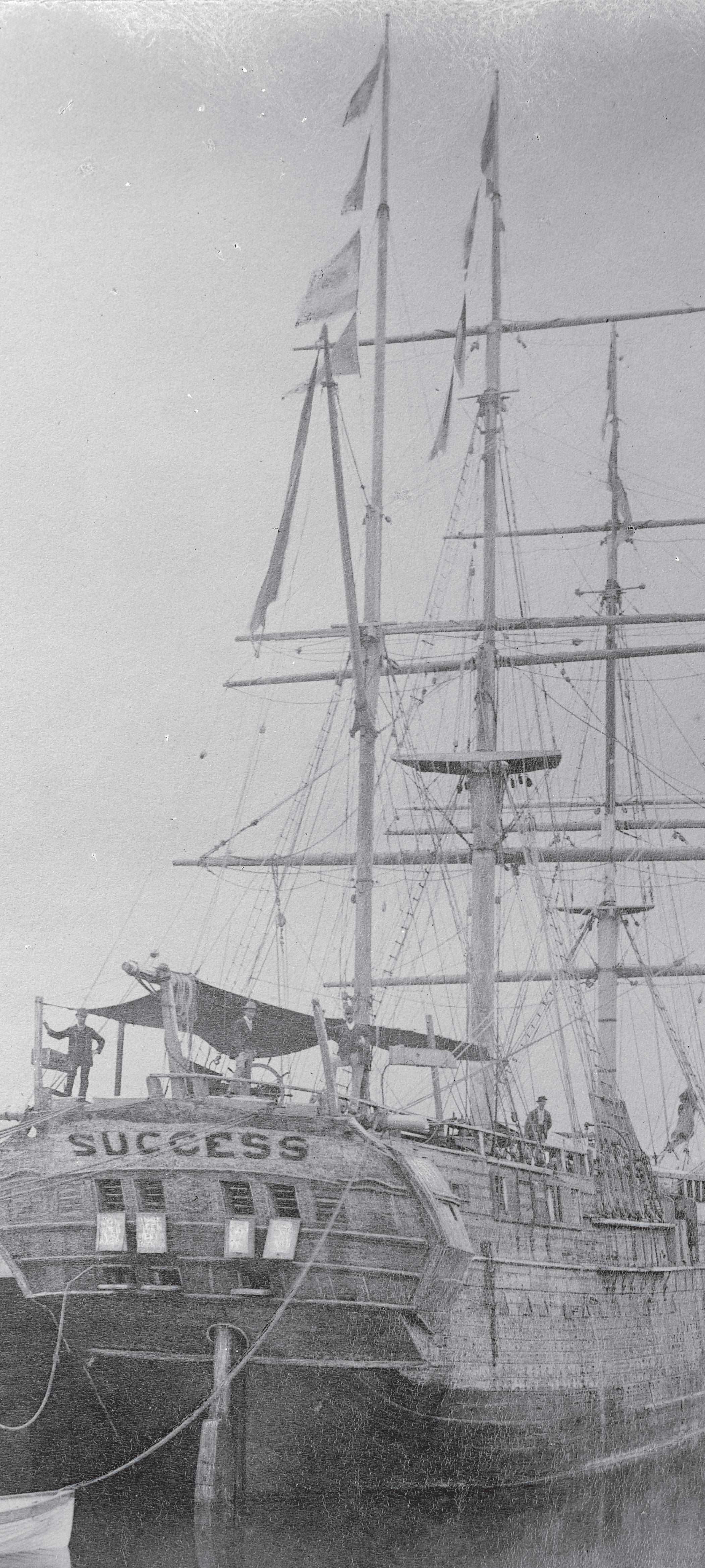 Measuring 135 feet in length and having three masts, Success was built in 1840 in India during the days of sail. Early in her long career, she made trips transporting immigrants from England to Australia, then functioned for several years as a prison ship, anchored in Sydney’s Woolloomooloo Bay. But it was when the ship’s owners put her up for sale that Success sailed into nautical history.