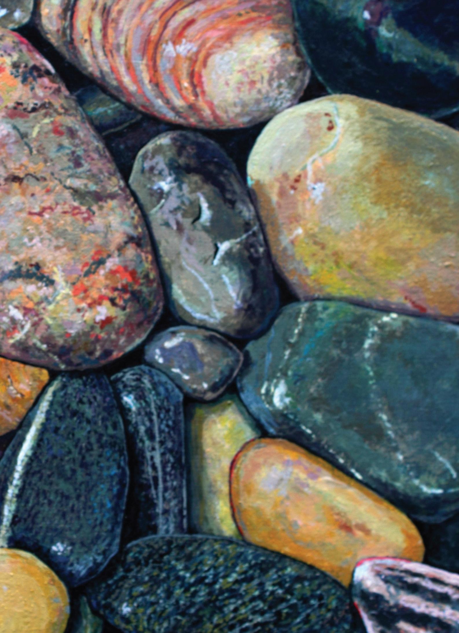 This page: A bead embroidery necklace created by Carmen Smith hangs on a sculpture by Charles Herndon at the Herndon Gallery and Sculpture Garden on the eastern side of Kelleys Island. See our story about the unique art enclave on page 10 (image courtesy of Herndon Galleries).