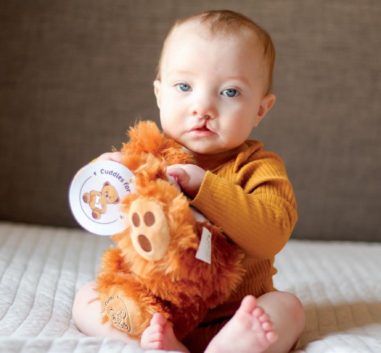 Calvin cuddling his Cuddles for Clefts bear he got for his upcoming cleft lip repair. Jessica Cawley, South Central Power Company member