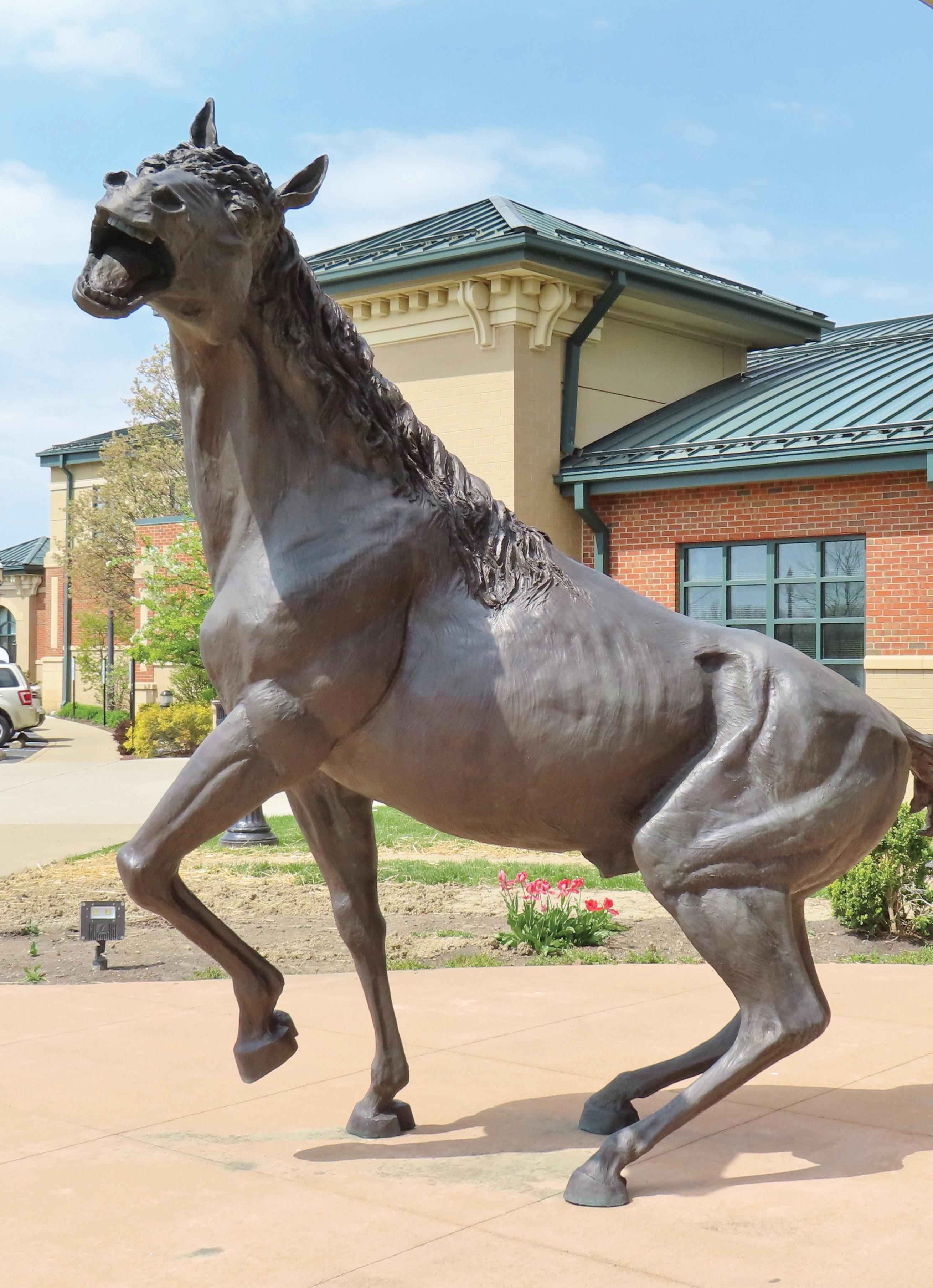This page: A statue of Cruiser, a supposedly untamable horse, greets visitors at the community rec center in Groveport (photograph by Damaine Vonada).