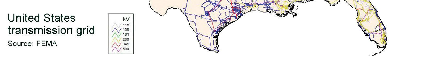 Transmission lines, 100 kV to 300 kV: compares to a U.S. highway (not quite the capacity of an interstate); 10,000 to 100,000 homes.