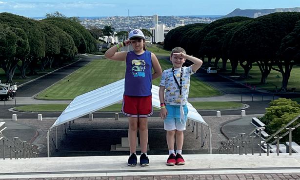 Salute: For Veterans Day, members put their respect on display — such as in this photo of Emma and Joey Foster (right) at the National Memorial Cemetery of the Pacific at Punchbowl Crater, submitted by thier parents, North Central Electric Cooperative members Anthony and Becca Foster.