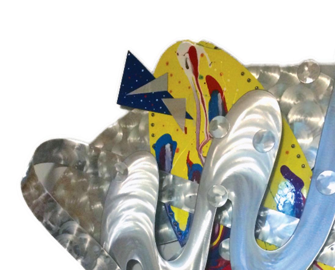 In his shop — a little shed that grew — stands a recently finished sculpture, a piece that suggests a silver musical note hanging in midair or a dancer holding a pose. Nearby, a multicolored waterfall of paint has been allowed to drip and dry on the edge of a workbench, and the contrast between the paint ribbons and the sculpture is stark.