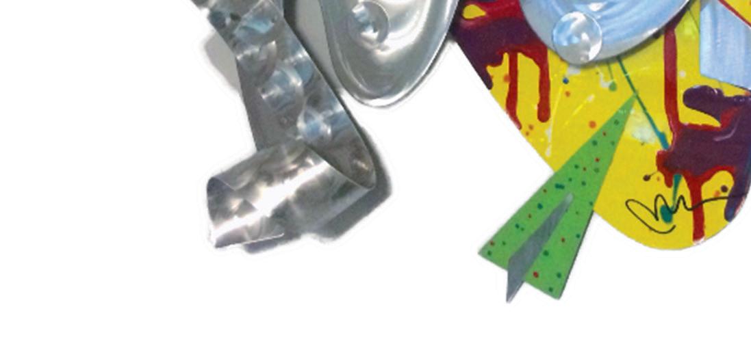 In his shop — a little shed that grew — stands a recently finished sculpture, a piece that suggests a silver musical note hanging in midair or a dancer holding a pose. Nearby, a multicolored waterfall of paint has been allowed to drip and dry on the edge of a workbench, and the contrast between the paint ribbons and the sculpture is stark.