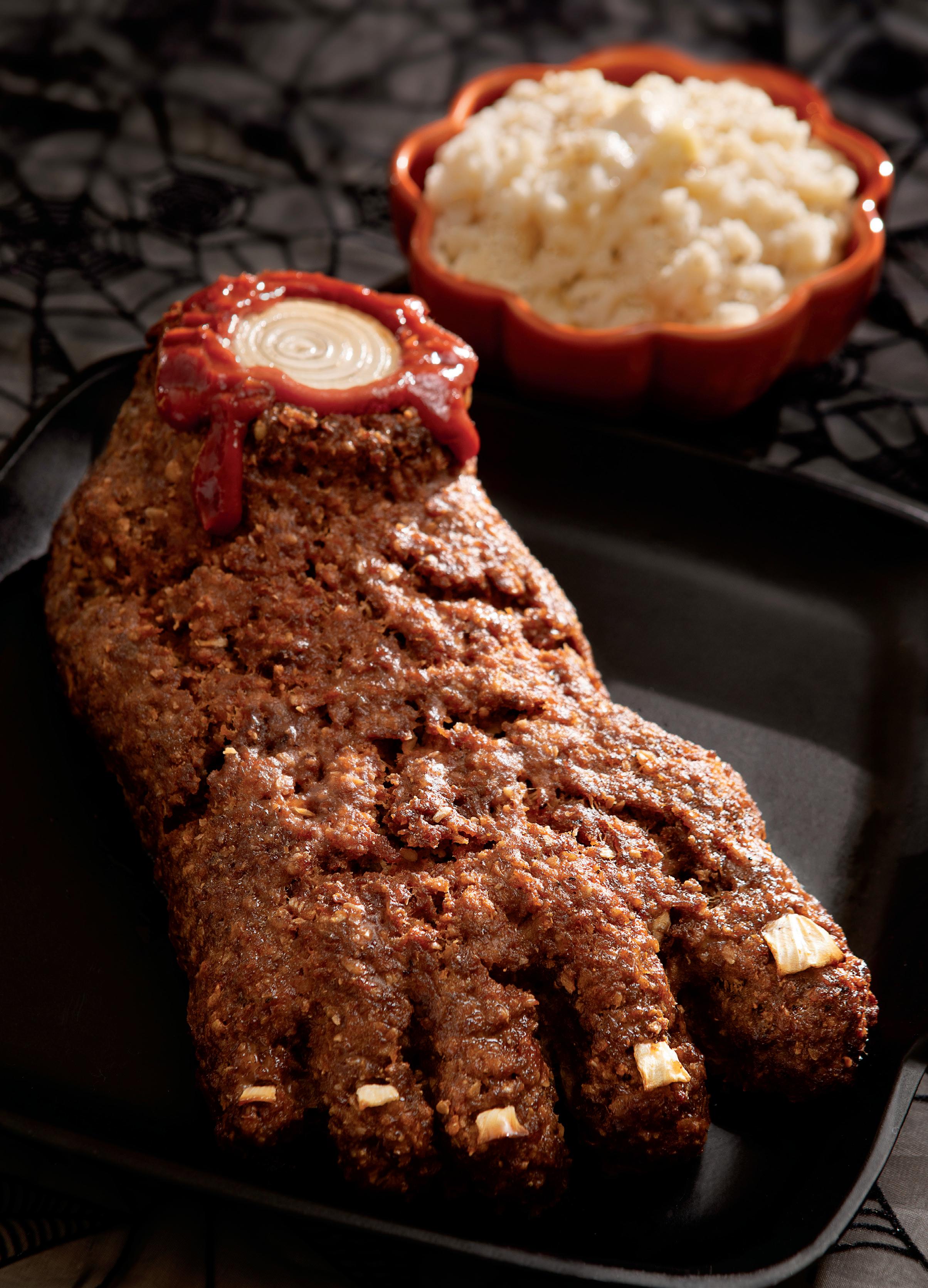 St. Patrick’s Day, for example, is an occasion to set up a fruit tray arranged like a rainbow; red, white, and blue themes rule the table on Independence Day. But on Halloween: Bring out the Feetloaf.