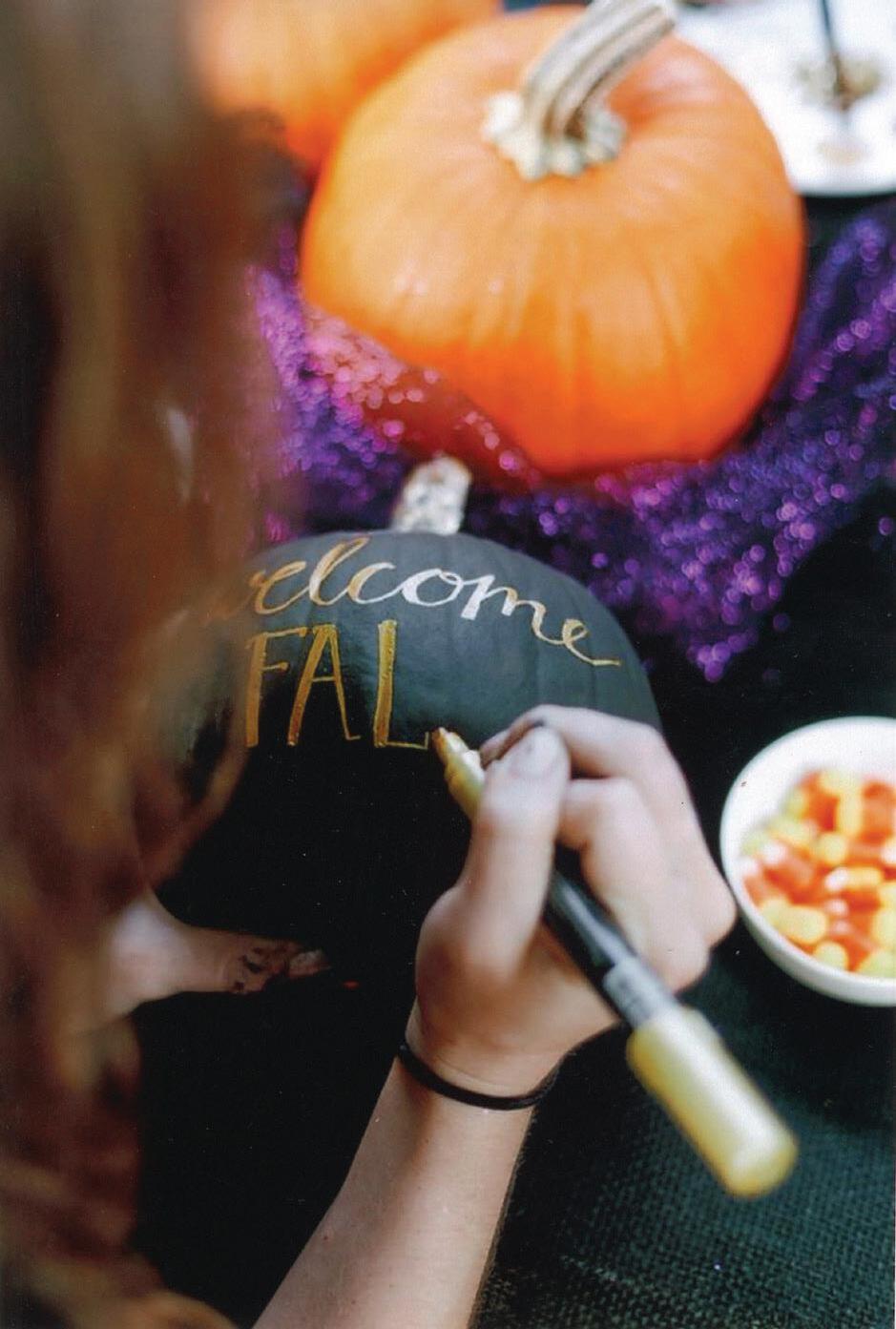 Elshoff uses a black paint pen to darken the outline and “neaten” the design. Later she sprays on a clear-coat finish, though even with that added protection, she warns customers about placing pumpkins in direct sunlight or allowing them to remain in the pouring rain, because neither of those is good for the longevity of any pumpkin.