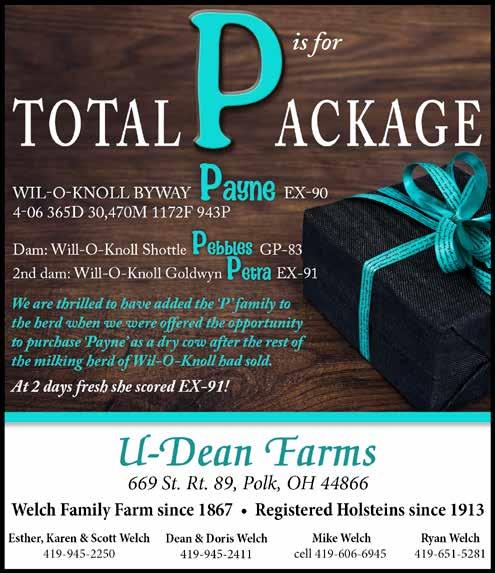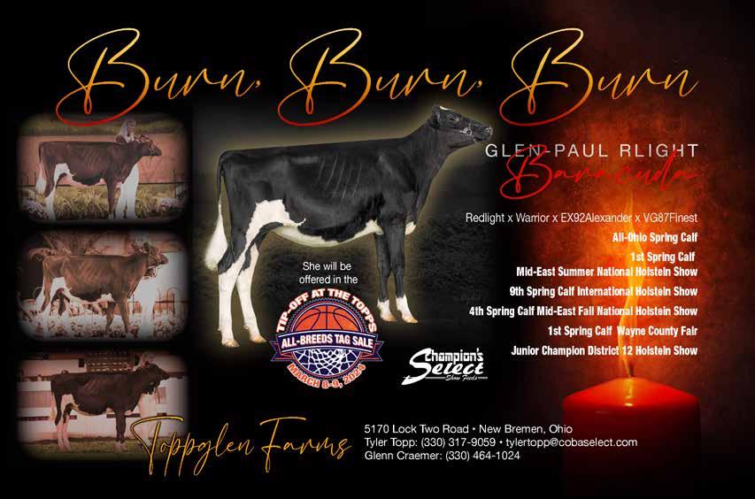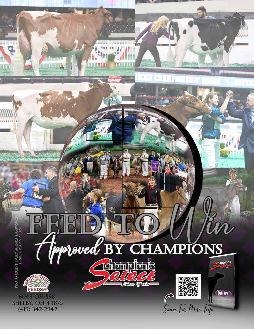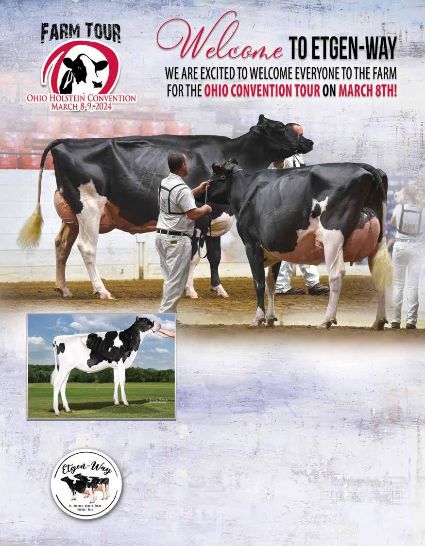 We are back in western Ohio for the convention hosted by District 12. Three farms will be hosting farm tours, Brownhaven Farms, Topp-View-PC and Etgen-Way Holsteins. The tours will be self-guided and everyone is free to visit each farm for as long as they wish. We thank these families for graciously hosting and more information on each farm is available in our special farm tour section on pages 8-11. This is our All-Ohio issue and we thank Select Sires Member Cooperative for sponsoring it and the presentation of the winners. Walnut Hill Feeds has also underwritten advertising for those winners who use their Champions Select feed and we want to thank them for their generosity as well.