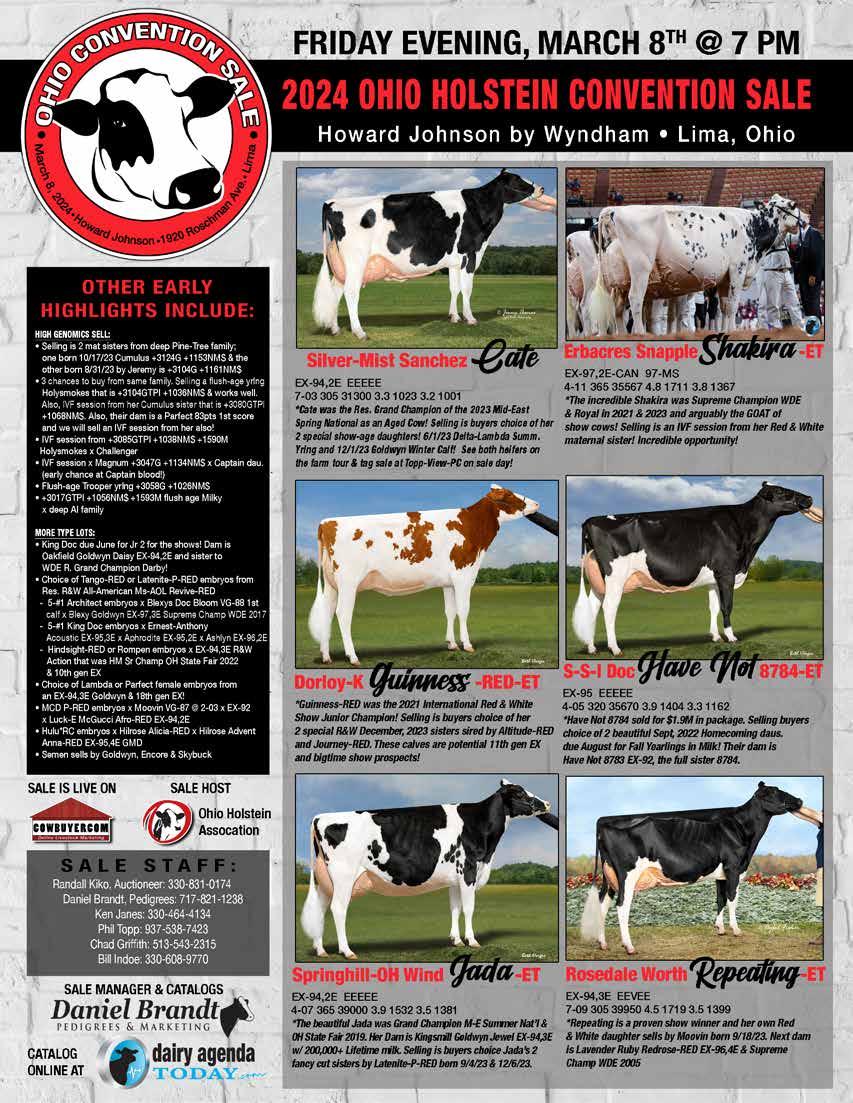 The State Holstein convention in Lima Ohio is right around the corner. Thank you to those on the planning committee, we appreciate your time and effort putting the event together. Please be sure to get your reservations in as soon as possible. Even if you are unable to participate in person, please take advantage of the virtual auction Friday night. We appreciate all of our consigners and sales crew. In addition, two local herds are hosting farm tours, Topp-View PC and Etgen-Way.
