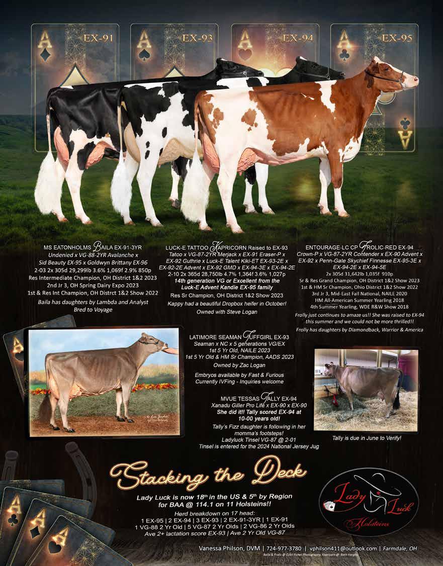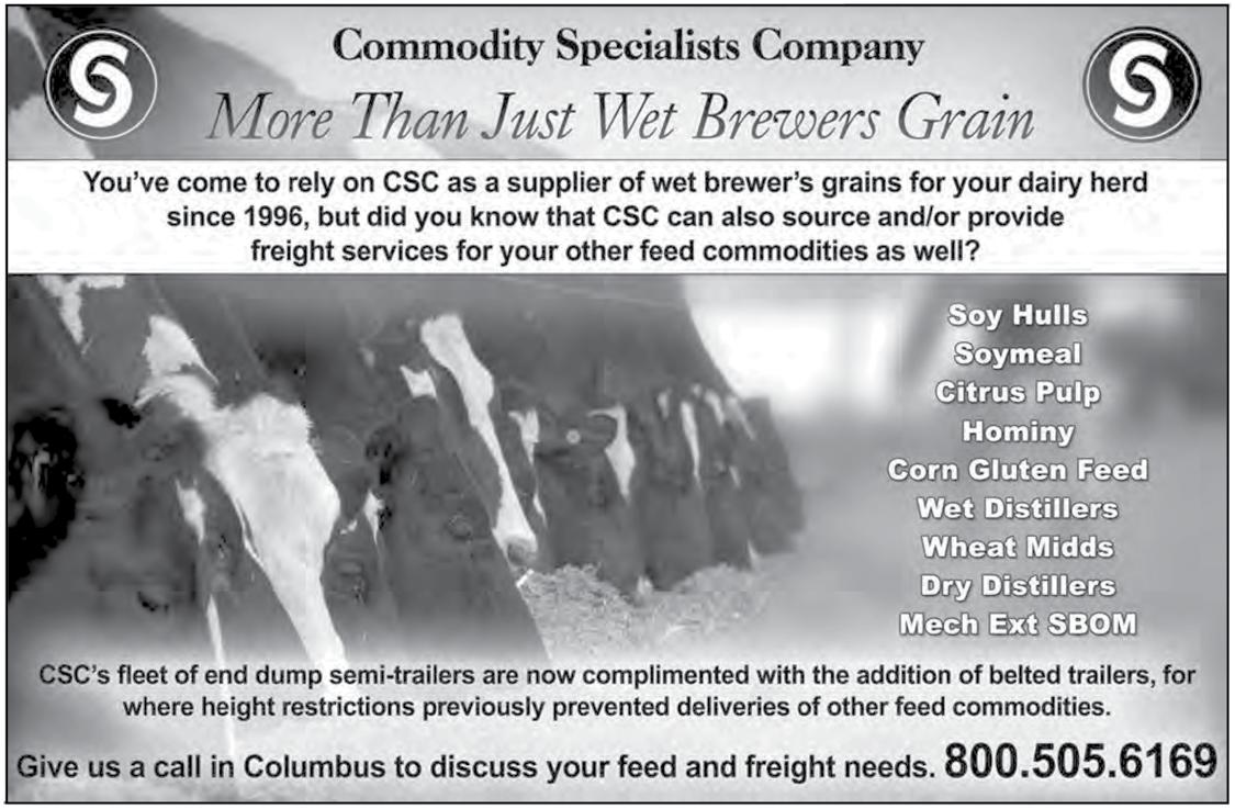 58 | OHIO NEWS | JANUARY/FEBRUARY 2024 Ack-Lee Registered Holsteins ................................................................................ 7 ADA Mideast /ODPA ................................................................................................. 3 Andrews Auctioneers 15 Brook Hollow Farm 44 Buckeye Classic Sale ............................................................................................... 49 C Squared Show Cattle 22 Commodity Specialists 6 Computermixx ......................................................................................................... 15 DairyOne .................................................................................................................... 12 DHI Cooperative, Inc. 10 Etgen-Way Holsteins 2 Farmers National Bank........................................................................................... 18 Gunkelman Family Farms 47 Harold’s Equipment 43 Jacher Graphics .......................................................................................................... 5 Kalmbach Feeds ....................................................................................................... 59 Ken & Kaye Janes/Ack-Lee Registered Holsteins/Culler Farms 39 Ken & Laura Wood and Family 19 Kidron Auction ......................................................................................................... 29 Kiko Auctioneers 20 Knolltop Farm 27 Lady Luck Holsteins ................................................................................................ 38 LindLaur Holsteins/LaurLind Swiss ................................................................... 45 LJB Genetics 48 M.H. Eby, Inc. 36 Meaden & Moore ....................................................................................................... 5 Mennonite Mutual 43 Miley Holsteins ......................................................................................................... 17 Miller Farm Holsteins 34 Ohio Beef Council 37 Ohio Holstein Convention Sale .......................................................................... 41 PBS Animal Health 14 Plainfield Farms 33 Pond, Cole .................................................................................................................. 29 Prenger’s, Inc. 12 Quietcove Holsteins ............................................................................................... 28 R&P Kiko Farms ......................................................................................................... 43 Ren-Bow 26 Rohaven Holsteins .................................................................................................. 27 Spreng, Jim 25 SSMC Advertorial 46 SSMC ............................................................................................................................ 60 ST Genetics 40 Stein-Way Dairy 24 Stein-Way Equipment ............................................................................................ 16 TJ Classic Holsteins/Lane Francis 16 Topp-View PC 30-31 Toppglen Farms ....................................................................................................... 35 U-Dean Farms 5 Velvet-VIew 34 Walnut Hill Feeds ..................................................................................................... 23 WG Dairy Supply 48 Wil-O-Rae Show Cattle .......................................................................................... 36 Advertiser Index Issue Deadline Sent to You March/April March 11 April 5 May/June May 13 June 10 September/October September 1 September 25 November/December November 10 December 5 January/February January 14 February 5