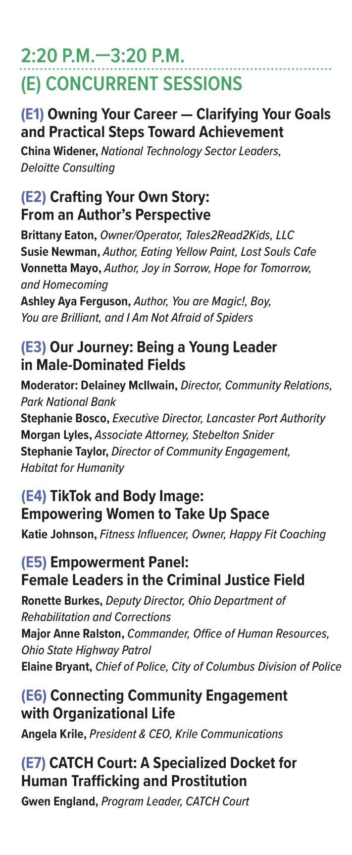 Celebrate Women 2023 brochure containing information about sessions, lunch, and guest speakers. Mary Murphy, Lancaster, Ohio native and former celebrity judge on "So You Think You Can Dance" is the keynote speaker. The theme is: Women Empowering Women.
