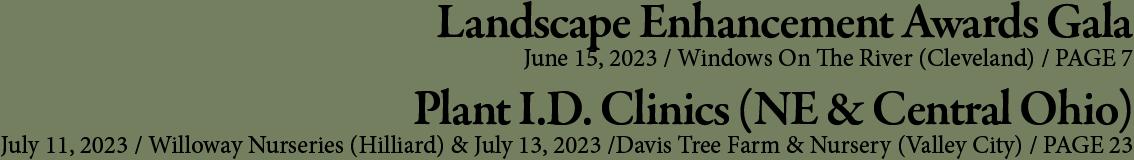 is clinic is a hands-on training opportunity for you and your crews covering the basics of Plant ID for plants typically used in Ohio. Sponsored by Willoway Nurseries. See page 23 for more information.