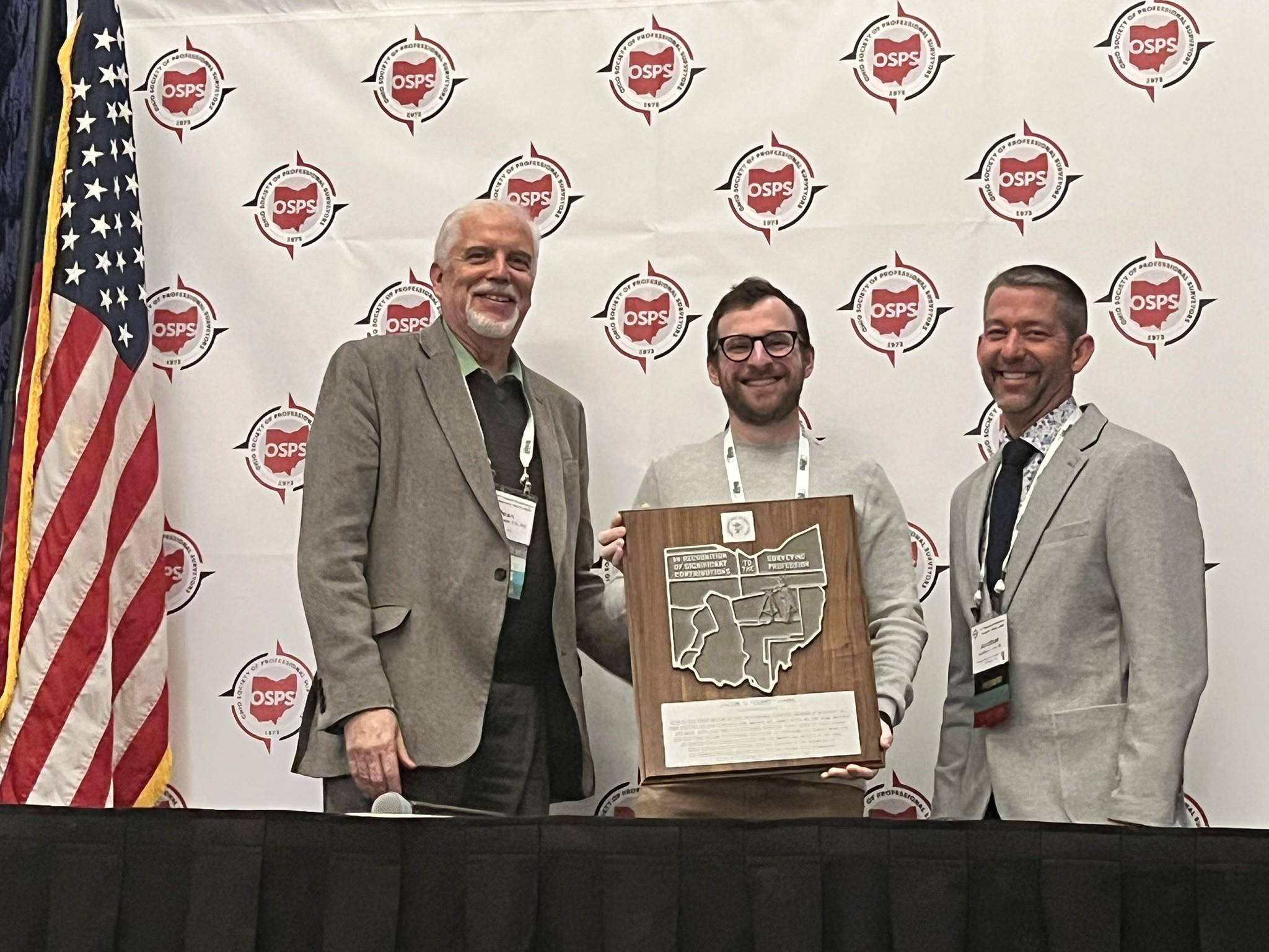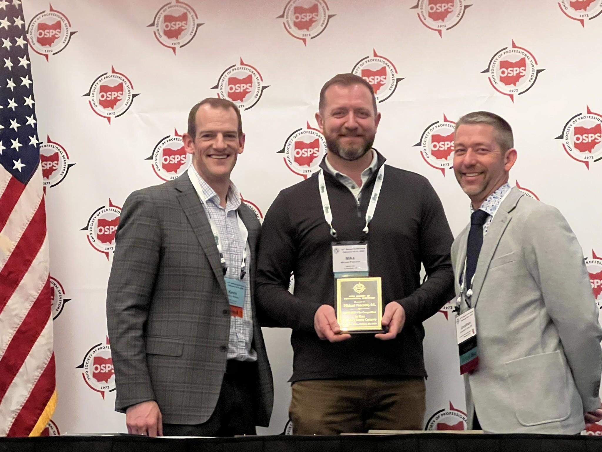 Plat Competition (Boundary Category): Michael Peecook, EMH&T, Inc. Kevin Woeste (l) and Jon Link (r) present the award.