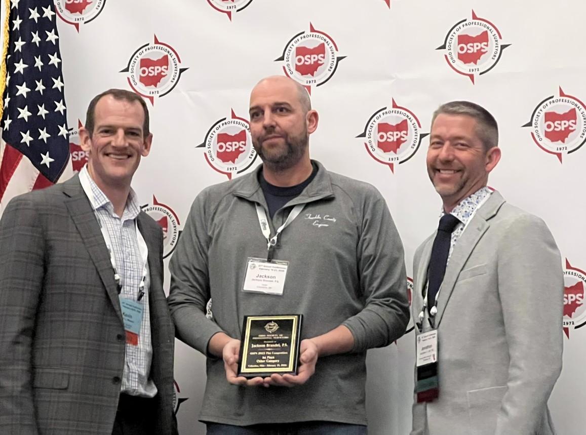 Jackson Brandel, Franklin County Engineers Office Kevin Woeste (l) and Jon Link (r) present the award.