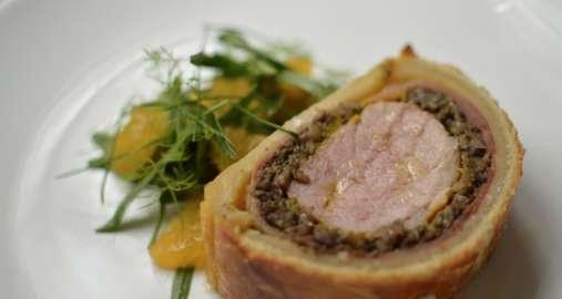 Participants will work in pairs to create a pork wellington and panna cotta, guided through each step by professional chefs. The session covers making mushroom duxelles, a citrus salad, basic knife skills, timing, and kitchen organization. Guests can enjoy their meal with a glass of wine or take it home. Aprons, ingredients, and equipment are provided; reusable containers are recommended.