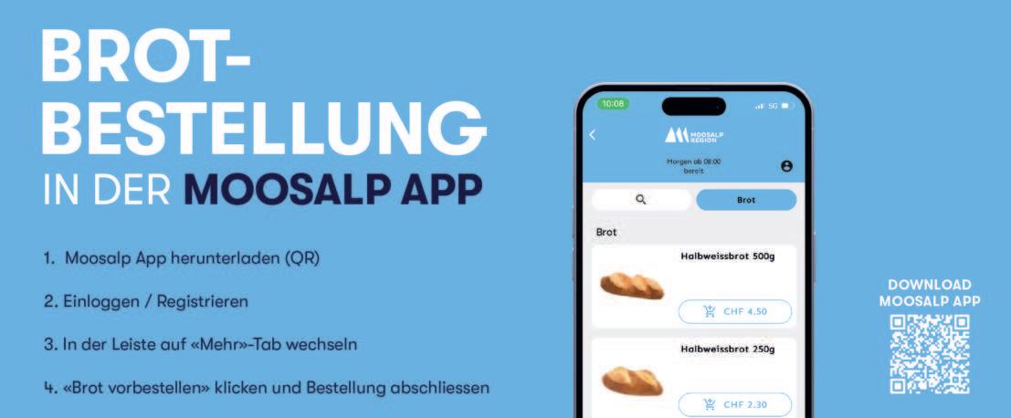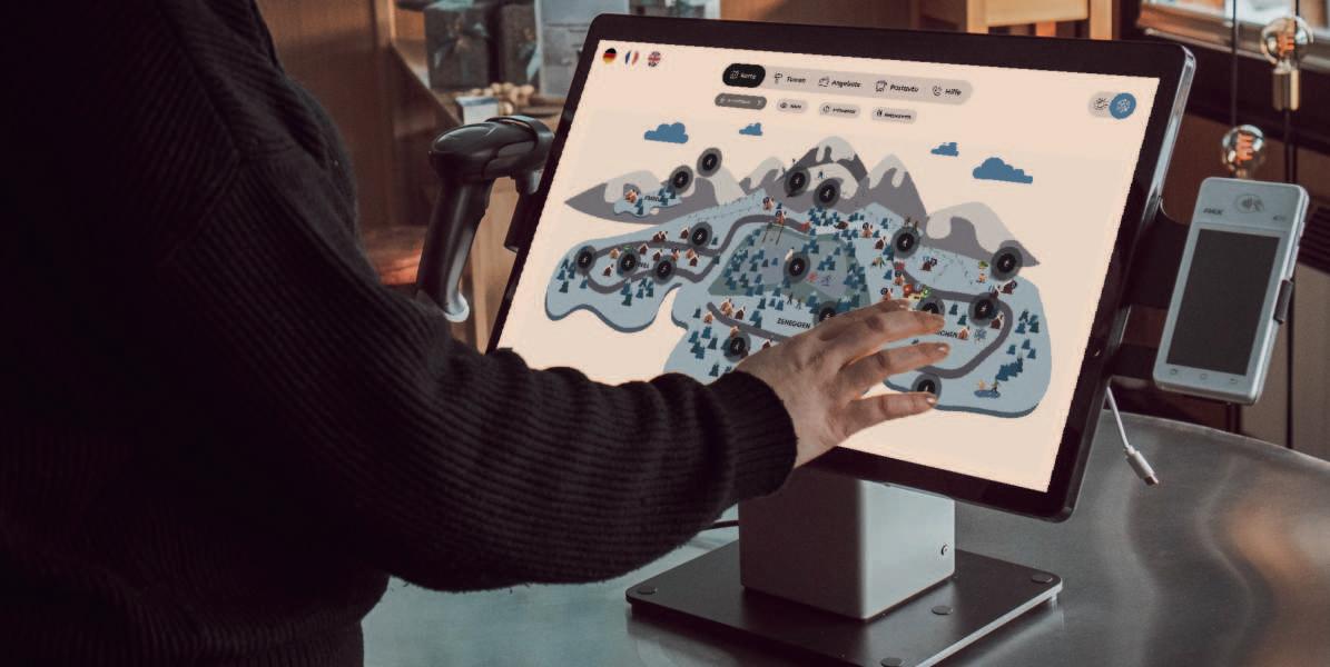 Das Herzstück des neuen Konzepts ist das rund um die Uhr zugängliche Info Center in Bürchen. Der Zutritt erfolgt unkompliziert über die Moosalpregion Tourismus-App. Gäste können sich registrieren und die Türen per Smartphone ö nen. Im Inneren erwartet sie ein interaktiver Touchscreen, der mit einer Chat-KI ausgestattet ist, um häufige Fragen zu beantworten und auf individuelle Anliegen einzugehen. Während der Hauptsaison wird das Angebot durch geschultes Personal