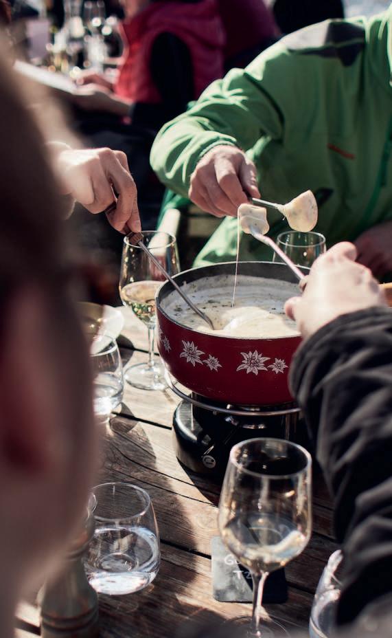Ka eekreationen und heisse Milchgetränke für die Aufwärm-Pause. Erfrischende Apéro-Getränke zum Ausklang des Skitags. Hausgemachte Cholera, ein traditioneller, herzhafter Gemüsekuchen, der satt und glücklich macht. Und: Süsse Kleinigkeiten, die perfekt zur Tasse Ka ee passen.