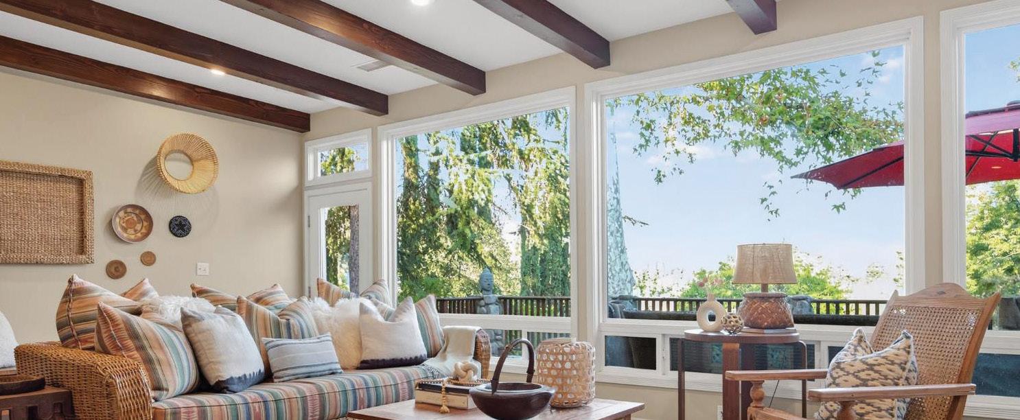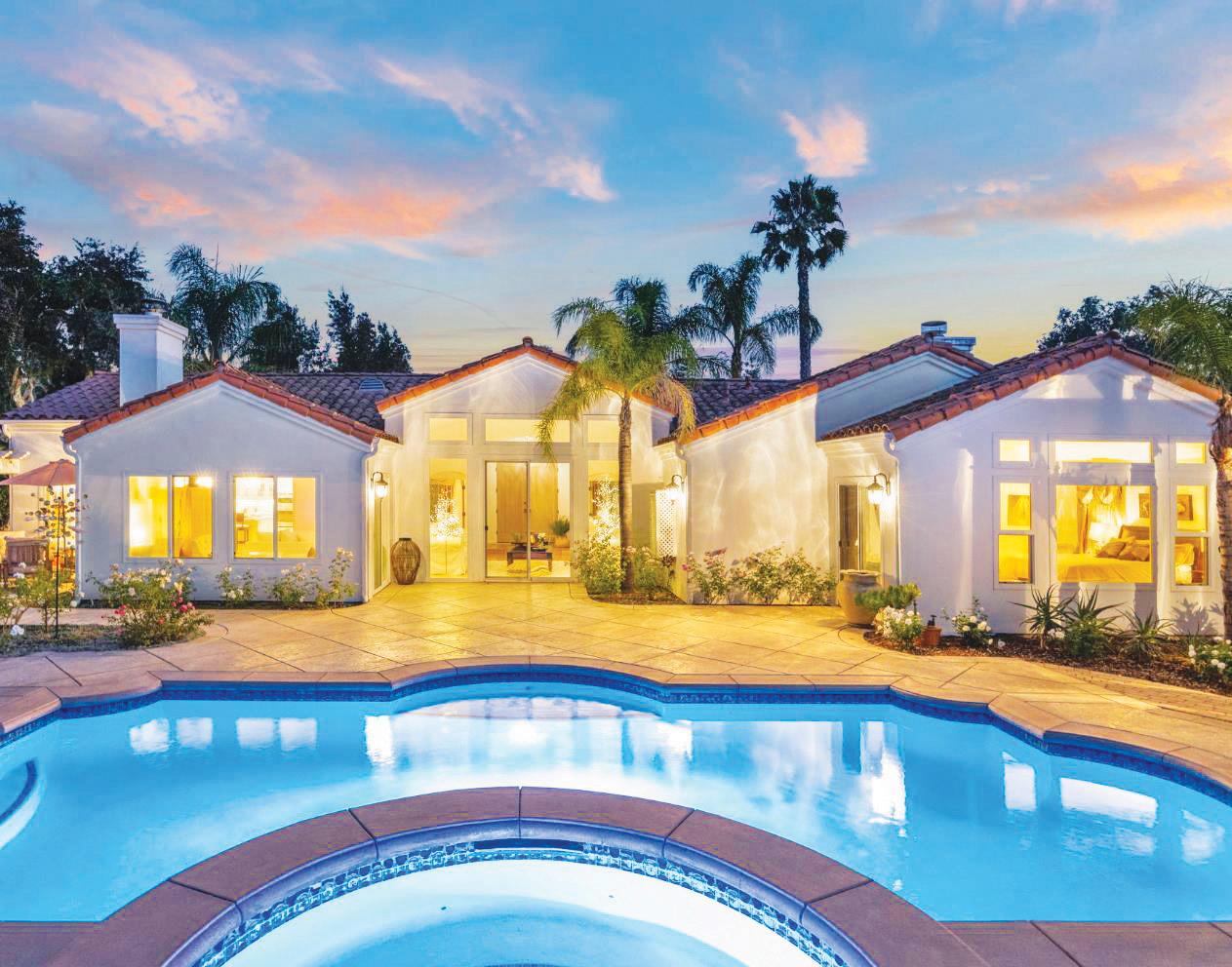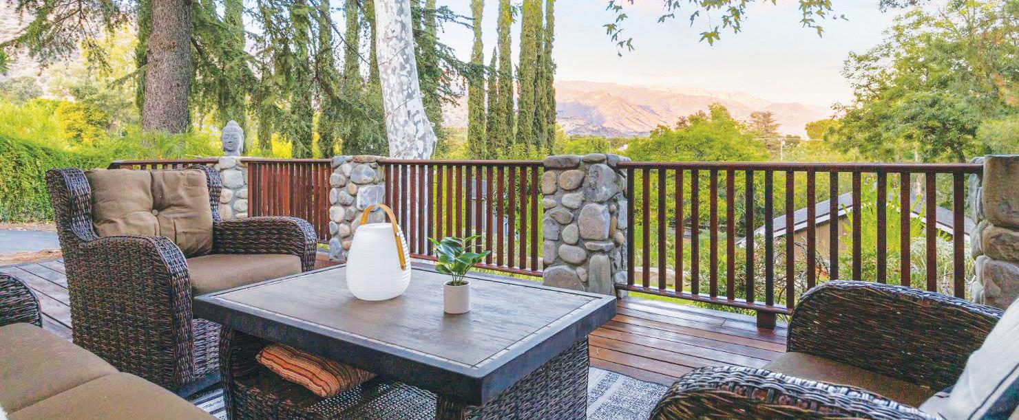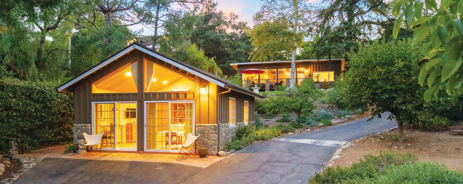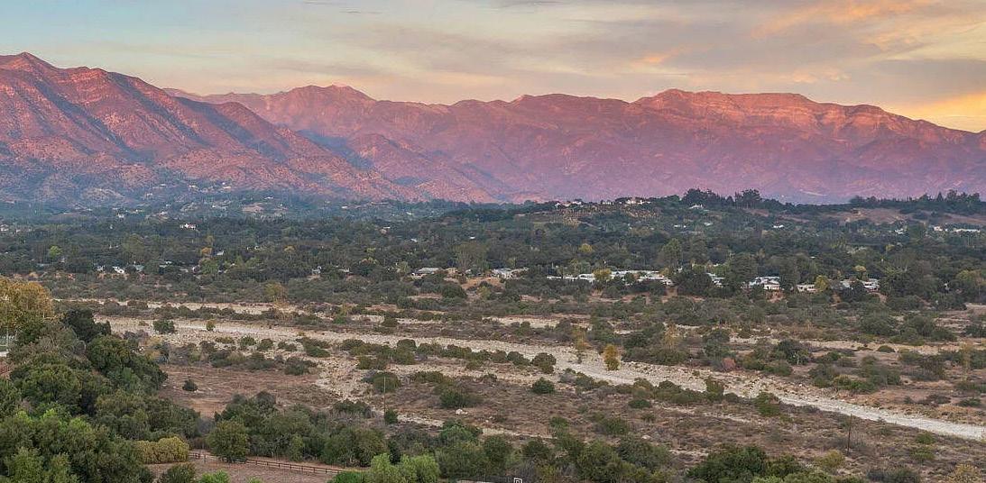 This hillside estate offers stunning views of the Topa Topa Mountains & the famous Pink Moment. The wide open, single story floor plan encompasses the living/dining room, kitchen & media room, which opens to the back yard with sauna. Preparing meals is a dream when you have jaw-dropping valley & mountain views in one direction & the lush, green side yard in the other. High-end appliances like the six-burner Wolf stove & Meile dishwasher make for great meals & easy cleanup. The large laundry room features plenty of built-ins, washer/ dryer, & wine fridge. Four comfortable bedrooms include the primary with cozy fireplace designed by RTK Studios & a relaxing spa bath. There’s also an office space with separate entrance & large storage room. The airy guest house has soaring wood ceilings, sliding glass doors, clerestory windows, a Murphy bed with builtin bookcases, large living area, & beautiful bath with granite countertop & roomy shower. If you’d like to turn it into an ADU, you can easily add a kitchen & lease it out for great additional income. This property really has it all.