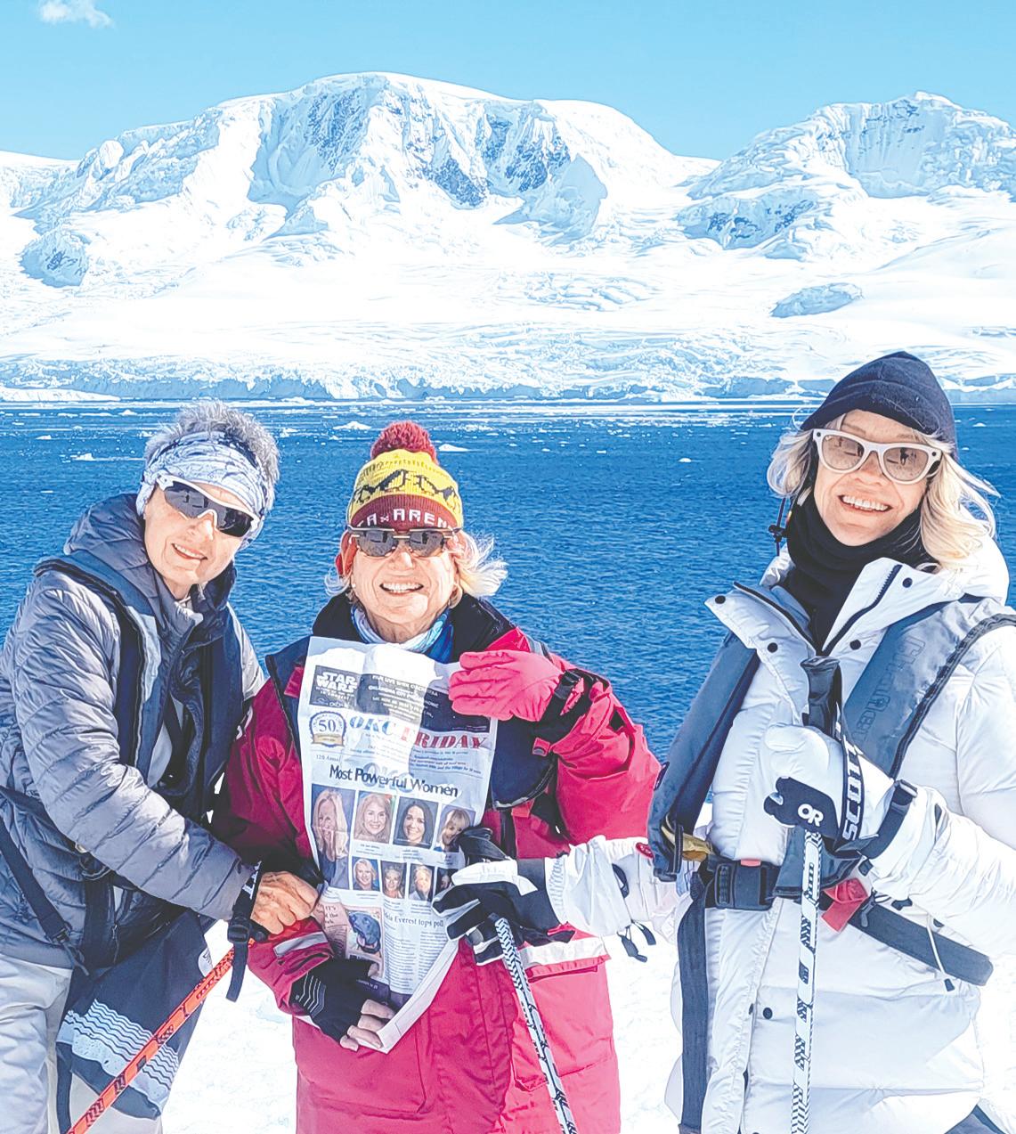 Three Putnam City High School Class of 1967 classmates recently traveled together to Neko Harbor in Antarctica, taking along a copy of OKC FRIDAY They are Linda Manaugh, recently retired as Special Projects Director for The Potts Family Foundation, Liz Wise and Debbie Austin. We had beautiful weather and it was a beautiful place to visit. Linda lives in the Edgewater addition of OKC, Liz resides in Quail Creek with her husband Dr. James Wise and Debbie lives in Seattle. Be sure to pack your newspaper when you travel. Email photos to rose@okcfriday.com.