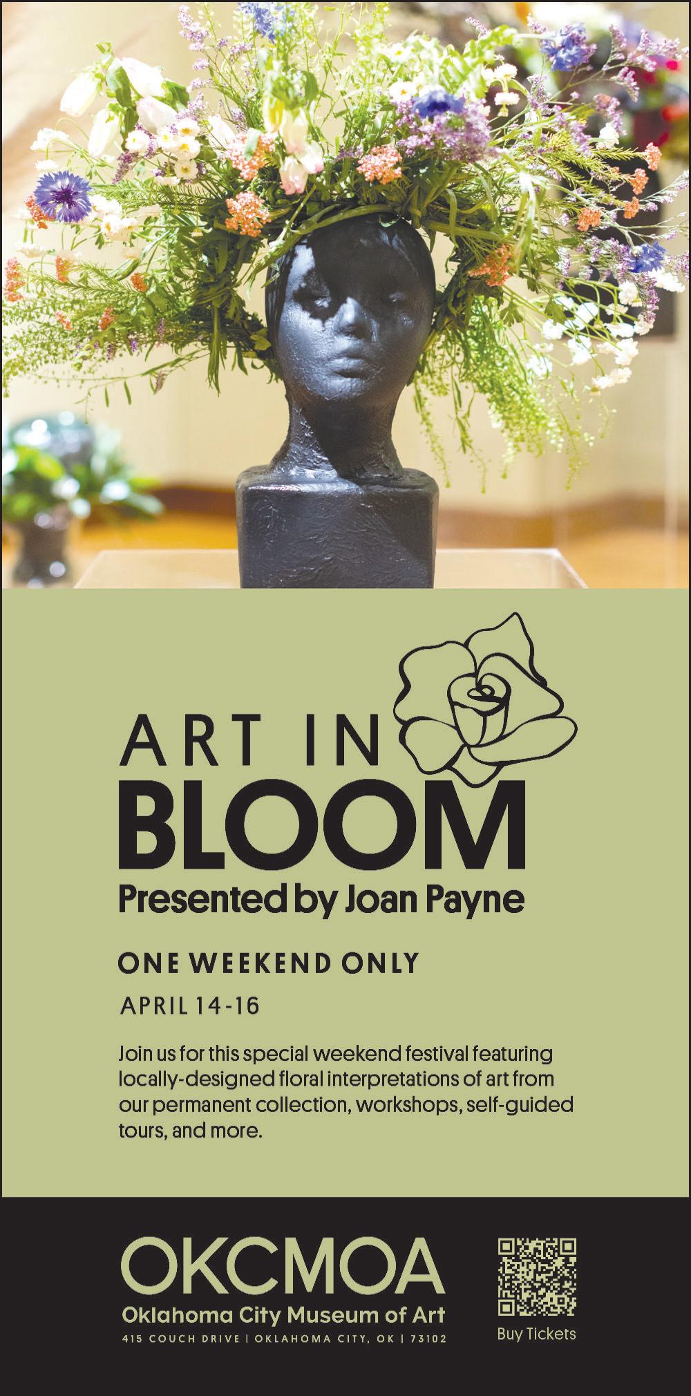 Myriad Botanical Gardens enthusiastically announces their inaugural Tulip Festival on Saturday and Sunday, April 8 and 9 from 10 am to 5 pm. This free twoday event will feature eyecatching spring blossoms, creative displays, classes, musical performances and 50+ local food and merchandise vendors. The festival will also feature the first Crystal Bridge floral show since reopening, and a tulip art show. Admission starts at $10.50 with discounts for seniors, military, students and youth. Members get free admission all year. Purchasing a membership is recommended to help keep the Gardens vibrant throughout. Visit myriadgardens. org for more information.