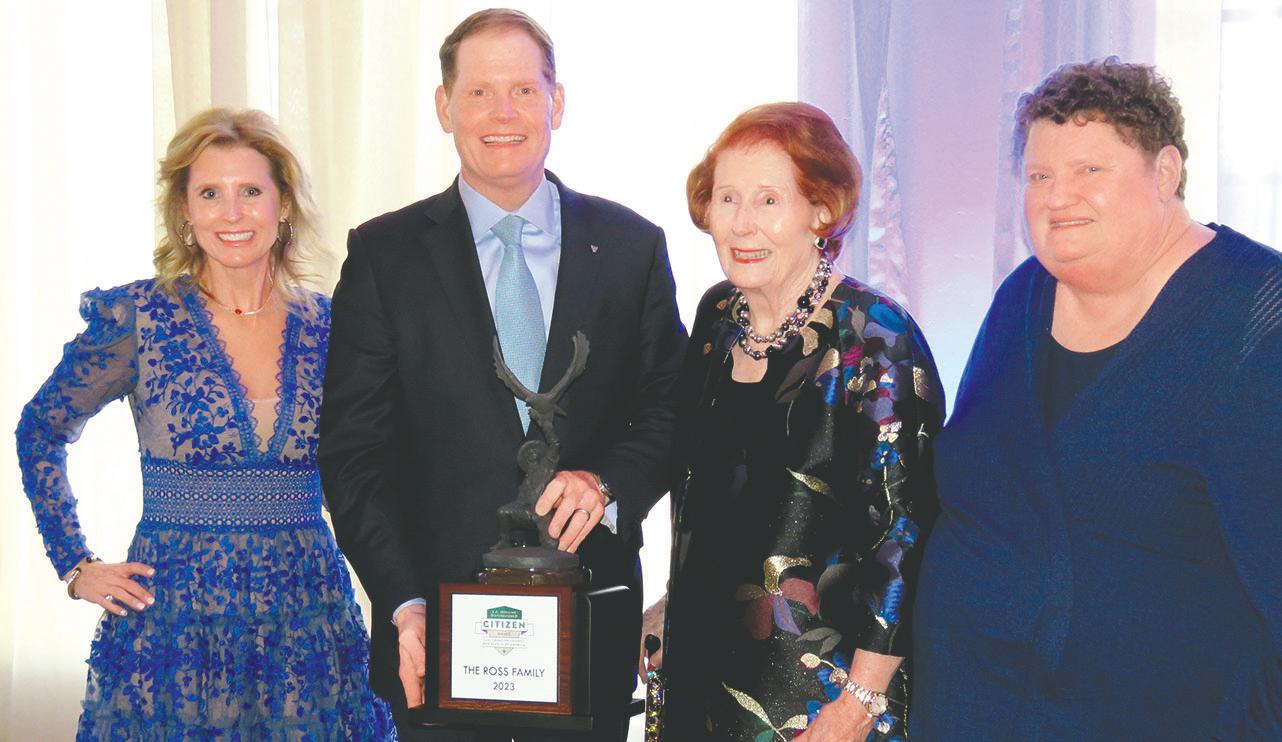 At right: The Ross family accepting the Lake Frontier Council, Boy Scouts of America’s E.C. Joullian Distinguished Citizen Award, from left, Molly Fuhrman, Bob Ross, Lil Ross and Becky Roten.