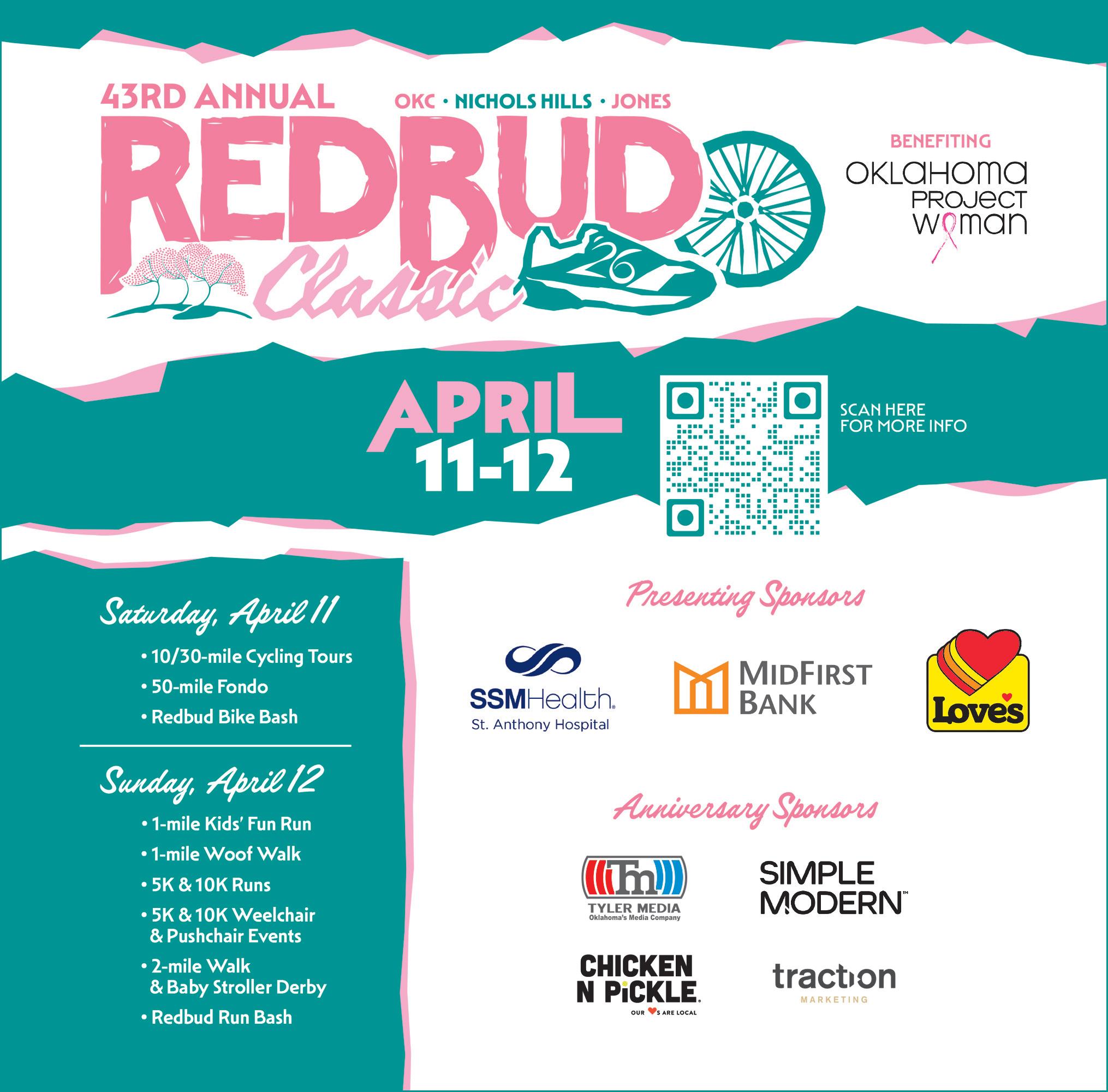 Since 1983, Redbud Classic has become a spring tradition in Oklahoma City, raising nearly $1 million for local nonprofit organizations while generating broad community and economic impact. The event brings together athletes, families, volunteers, sponsors and local businesses in a shared effort to promote healthy lifestyles and strengthen the community.