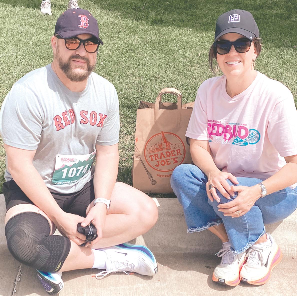 It was a beautiful day in Nichols Hills for the 43rd Annual Redbud Classic. The two-day event featured a Woof Walk, bicycle events, a 5k and 10k, as well as the popular Redbud Bash. This year’s beneficiary was Oklahoma Project Woman, which provides free breast health care to women who don’t have insurance. Above: Assistant Race Director Kristen Parker and Race Director Kristin Hersom. At right: Borr and Jill Olson.