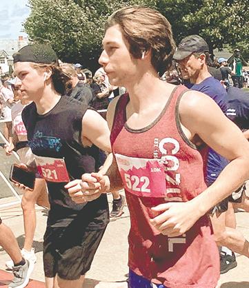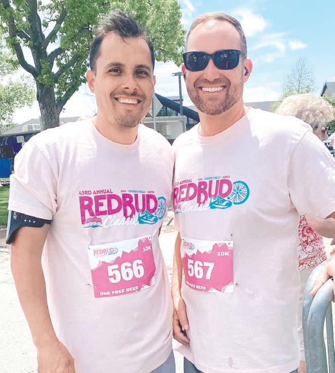 Oliver Wright, of Oklahoma City, and Chance Pierce, of Edmond, cross the starting line in the 43rd Annual Redbud Classic in Nichols Hills. In addition to a Woof Walk, wheelchair and stroller races, a 5K and a 10k, those in attendance enjoyed the Redbud Bash with music and refreshments. For more photos, see Page 12.