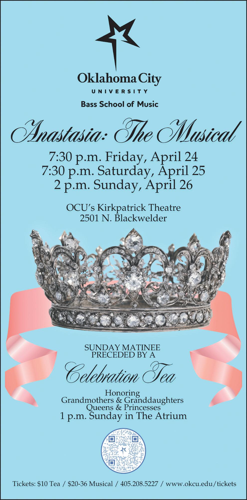 “Silhouette of a Territorial Lady” on April 18 at 4 p.m. The production is a onewoman play written and performed by OKC native Linda Kenney Rosser. Page 7.