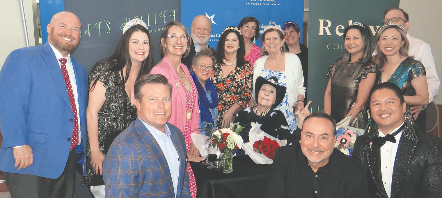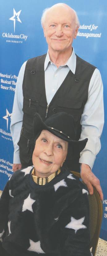 From left: Front, Mike Schulte, James Paper Henry and Victoria Flores; and back, Joe Dorman, Candice Payne, Susan Webb, Lou Kolhman, Nate Webb, Heather Buckmaster Schulte, Lisa McConnell, Jane Jenkins, Laura McCullum, Christina Keep, Catherine Divis and Chad Divis. The film is a feature-length documentary examining the life and legacy of Rowan, the renowned dance instructor who created the acclaimed dance program at Oklahoma City University. At right: Jo and her husband, John Bedford, the retired dean of the Ann Lacy School of American Dance and Entertainment at OCU.