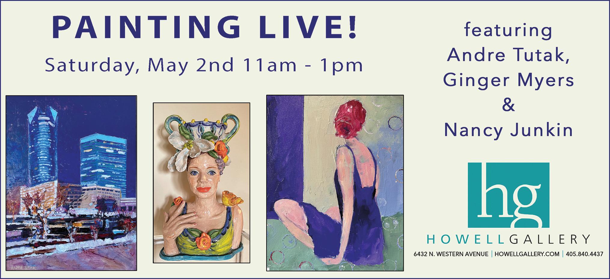Three of our Oklahoma City artists — Andre Tutak, Ginger Myers and Nancy Junkin — will be creating live. This is your chance to watch their visions come to life.