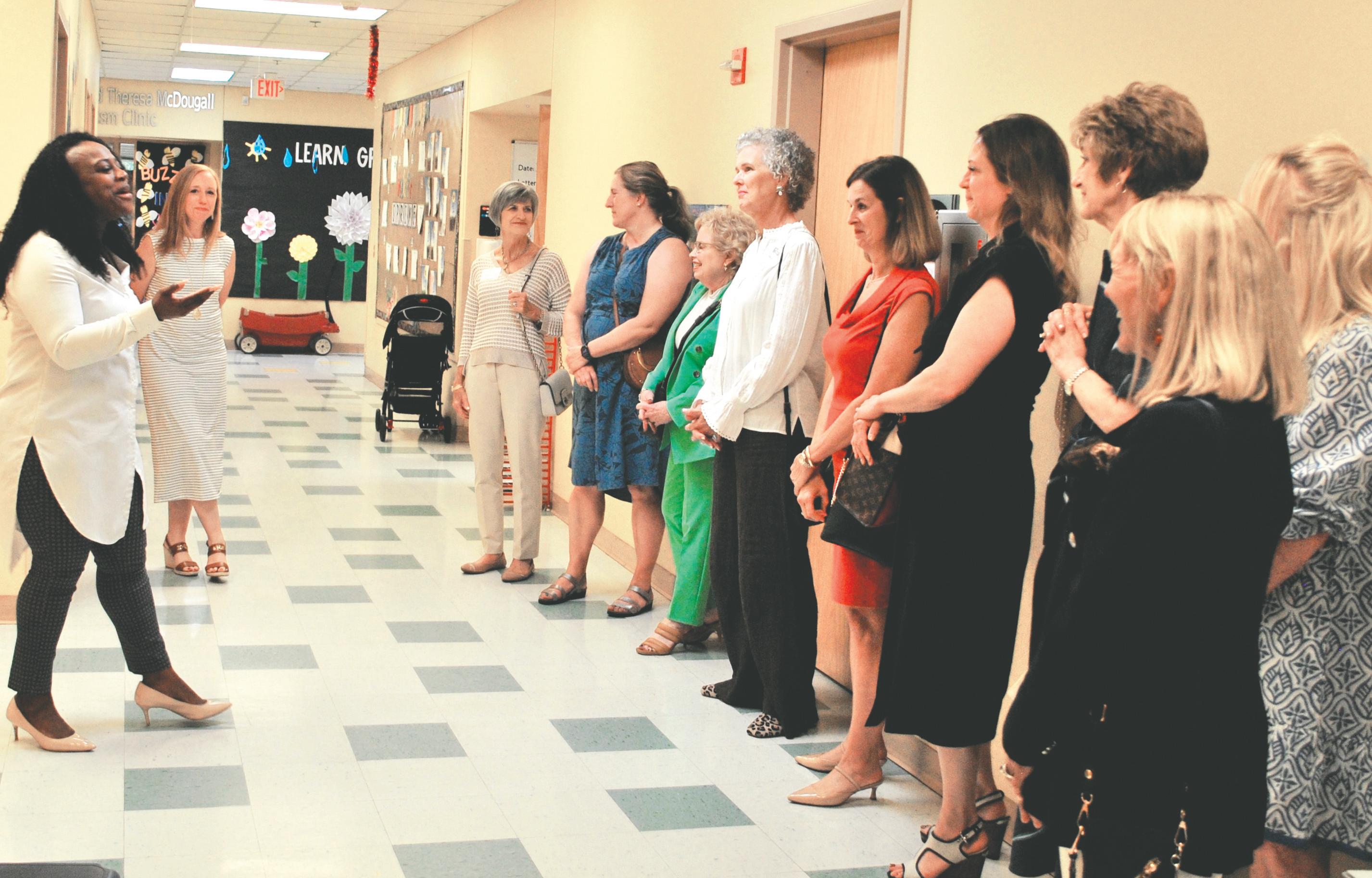 At left: Tiffany Maddox gives a tour of Special Care to members of United Way’s Women’s Leadership Society.