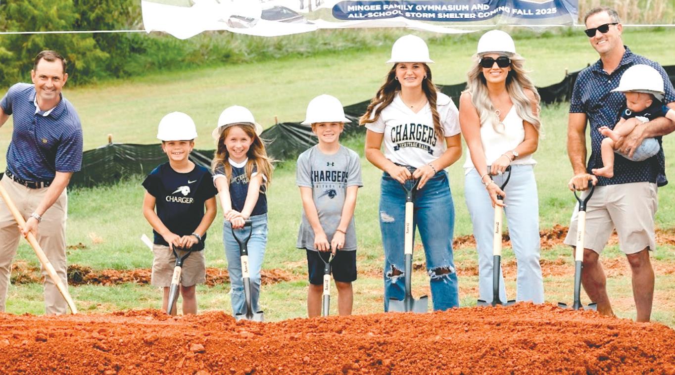 Attendees at the groundbreaking, held at the construction site of the new gymnasium, included Lauren and Leo Mingee, several representatives from the school’s Board of Trustees, other project donors, faculty, staff and students, as well as Heritage Hall co-founder, Mrs. Maxey Reynolds.