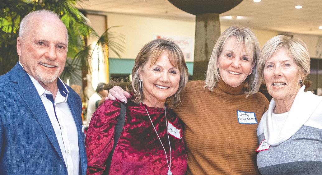 Debby Hampton, Patti Mellow and Marnie Taylor, above, hosted their annual Girls’ Party. With an invitation announcing, “We just want a kinder, gentler world where kale and exercise are not mentioned,” several hundred women attended the event at the Taylors’. Among those in attedance, in photos, clockwise, starting at right: The only men allowed — the hostesses husbands, from left, Mike Hampton, Mark Mellow and Clayton Taylor; Penny Voss and Meg Salyer, Jari Askins and Suzie Symcox; and Margaret Creighton and Susan Agel.