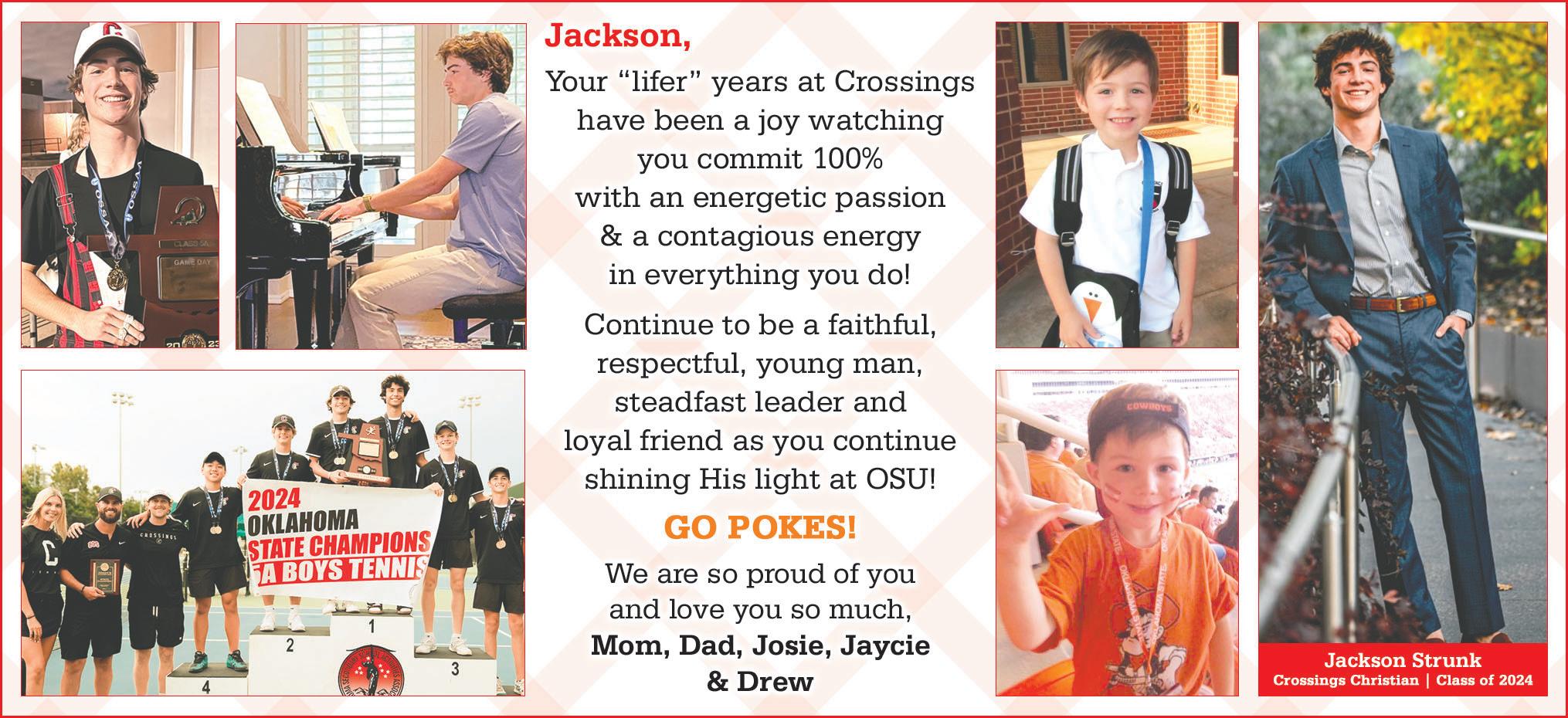 Superscore ACT, Outstanding Student in Chemistry I, AP Chemistry & AP Lang. & Lit., AP Scholar Activities: Tennis, Integris & Crossings Church Volun., Pianist
