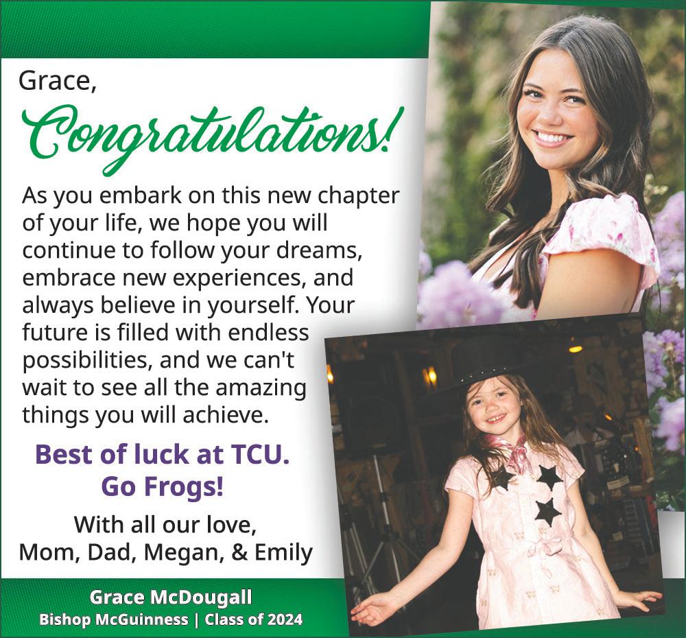 Also, Adelaide Snow Howe Toll, Robert Bladen Vogel, Katherine Taylor Voth Hogan, Zane Michael Watters, Madison Grace Williams, Holden Chase Williams, Steven Mbroh Wilson, Kaeden Thomas Woods, Charlotte Theresa Zeigler and Calvin Jacob Zenner.