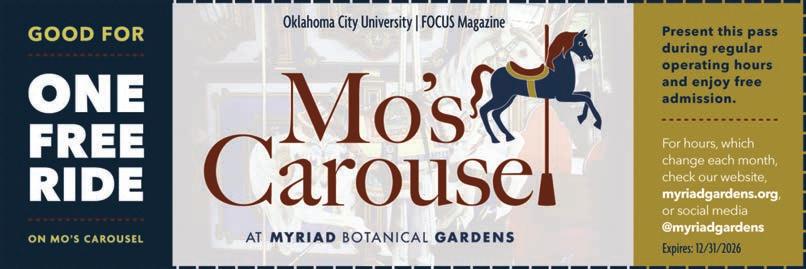 No remembrance of Herman would be complete without acknowledging his wife, LaDonna. Their connection began through OCU, and together, their generosity – most notably to the Kramer School of Nursing, in honor of her parents, and to the Meinders School of Business – helped reshape our campus. This issue also features reflections from three trustees who share their personal memories of Herman. For those in Oklahoma City or visiting the area, we invite you to experience Mo’s Carousel at the Myriad Gardens. We’ve included a certificate for a complimentary ride, along with a brief story about Mo Grotjohn and his decades-long friendship with Herman.