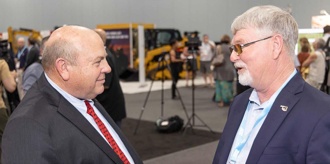 Kay County’s Stacy Simunek (right) visits with AFBF President Zippy Duvall at the 2023 AFBF Convention trade show.